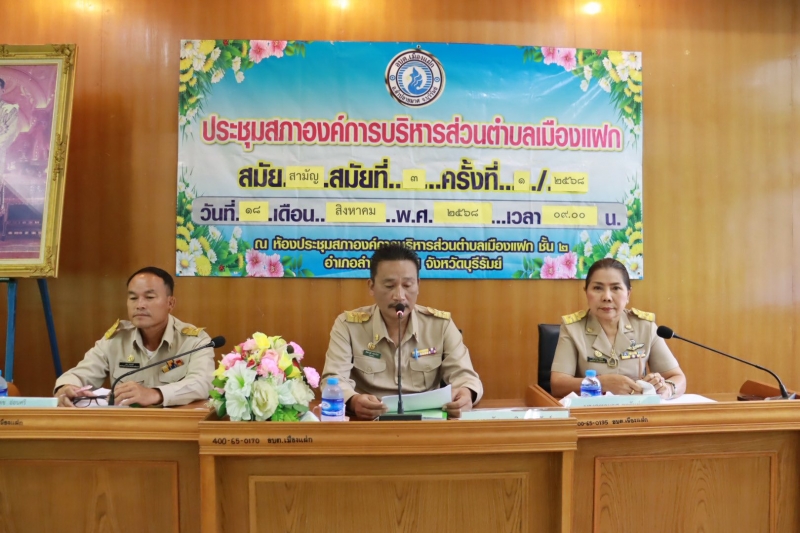 วันที่ 27 สิงหาคม 2568 เวลา 09:00 นำโดยนางศิริรัตน์ แทนพลกรังปลัดองค์การบริหารส่วนตำบลเมืองแฝก นายอัสดาวุฒิ ตอรบรัมย์ ประธานสภาองค์การบริหารส่วนตำบลเมืองแฝก ประชุมสภาองค์การบริหารส่วนตำบลเมืองแฝกสมัย