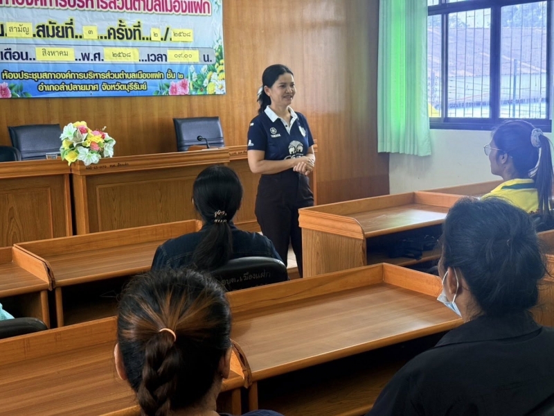 วันที่ 1 ตุลาคม 2568 เวลา 09:00 น. นางศิริรัตน์ แทนพลกรัก ปลัดองค์การบริหารส่งนตำบล รักษาราชการแทนนายกองค์การบริหารส่วนตำบลเมืองแฝก ได้พบปะและมอบนโยบายแก่ผู้ปฏิบัติหน้าที่ช่วยเหลือดูแลผู้ที่มีภาวะพึ่ง
