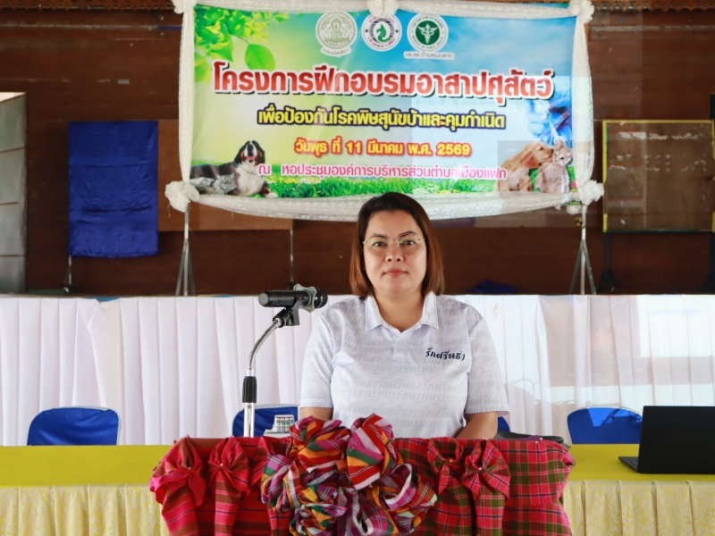 ประธานพิธีเปิดโครงการฝึกอบรมอาสาปศุสัตว์เพื่อป้องกันโรคพิษสุนัขบ้าและคุมกำเนิด