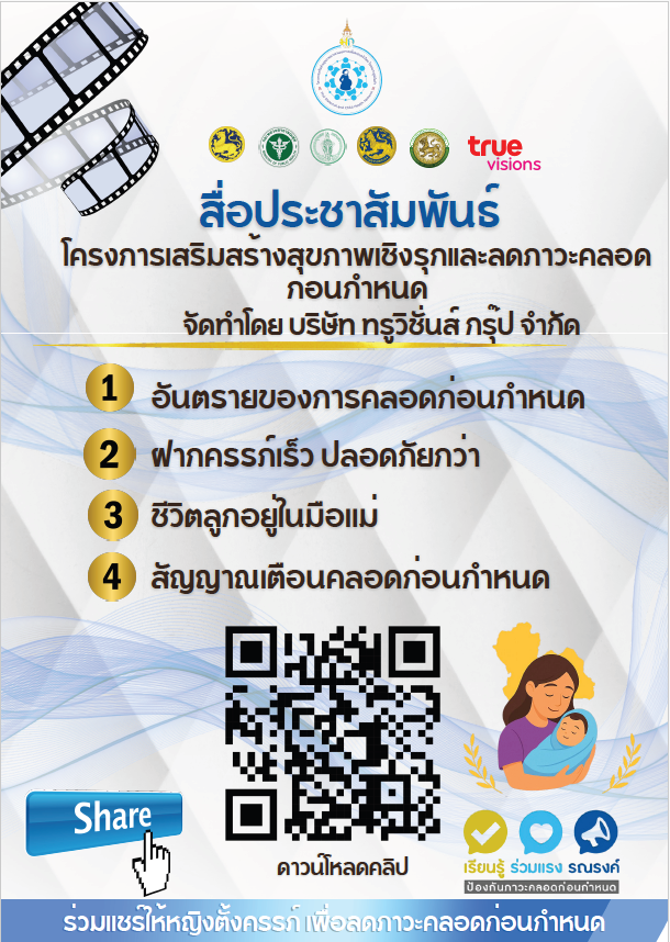 สื่อประชาสัมพันธ์ โครงการเสริมสร้างสุขภาพเชิงรุกและลดภาวะคลอด ก่อนกำหนด |