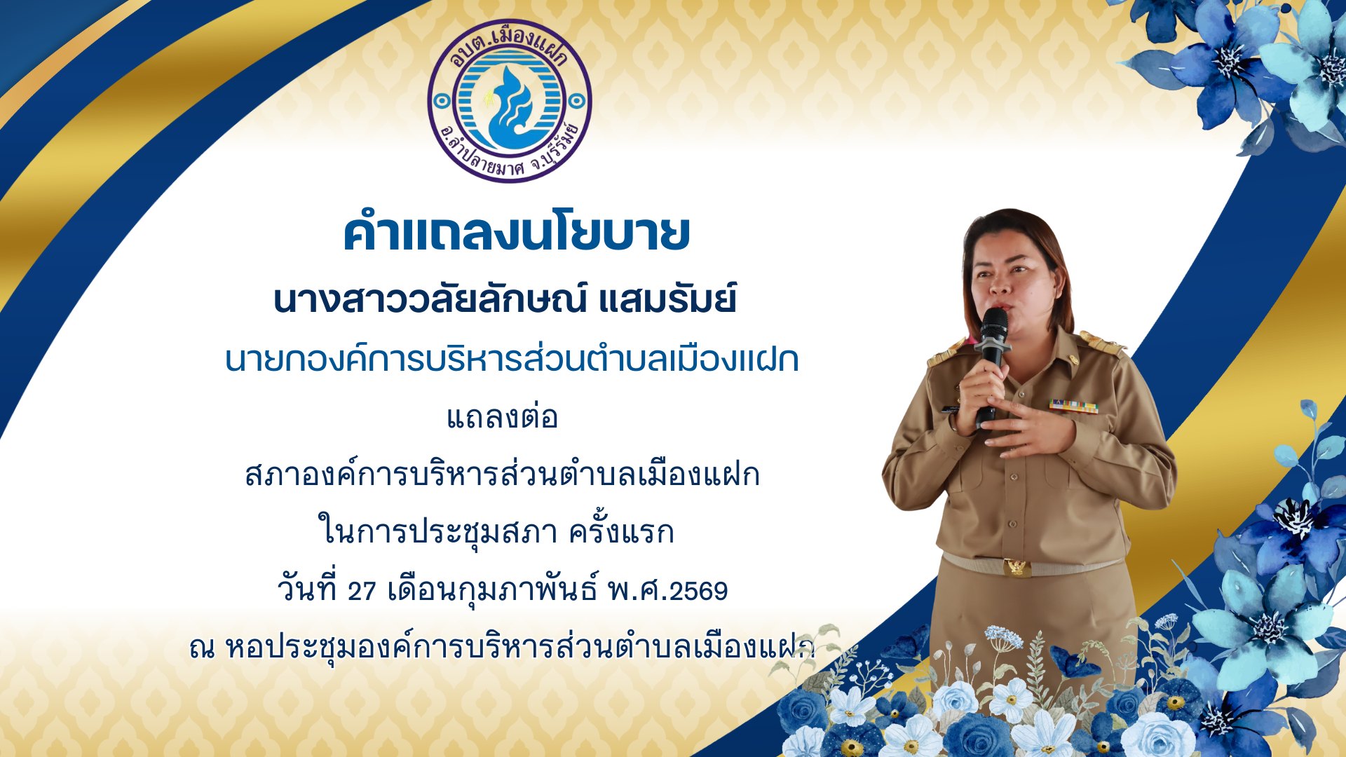 แถลงนโยบายการบริหารงานต่อสภาองค์การบริหารส่วนตำบลเมืองแฝก